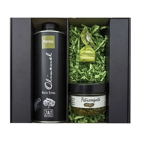 Ein mildes Pesto aus gemahlenen Pistazien, perfekt für einen ungewöhnlichen Pastagang oder die schnelle Gourmetküche. Zusammen mit unserem fruchtigen, mittel-intensiven BIO-Olivenöl aus dem Trás-os-Montes ein ganz besonderer Genuss. Als kleines Dessert der köstliche Tartufo dolce mit Pistazien – eine wahre Versuchung mit Suchtgefahr.